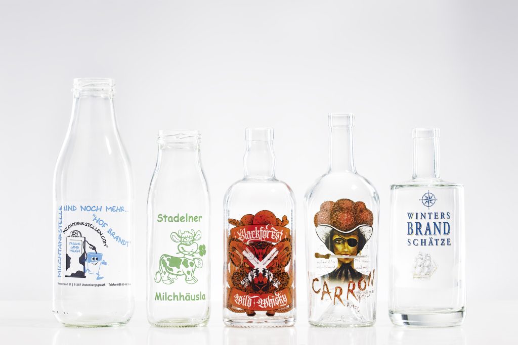 Prägungen im Glas gehören zum Beispiel zu den hochwertigsten Formen der Individualisierung. Sie sind dauerhaft und unabhängig von Etiketten sichtbar. Mattierungen oder Satinierungen schaffen Ruhe und Tiefe, Lackierungen dagegen setzen präzise Akzente. Direktdrucke können Etiketten ersetzen oder ergänzen und sorgen für ein minimalistischeres Erscheinungsbild.